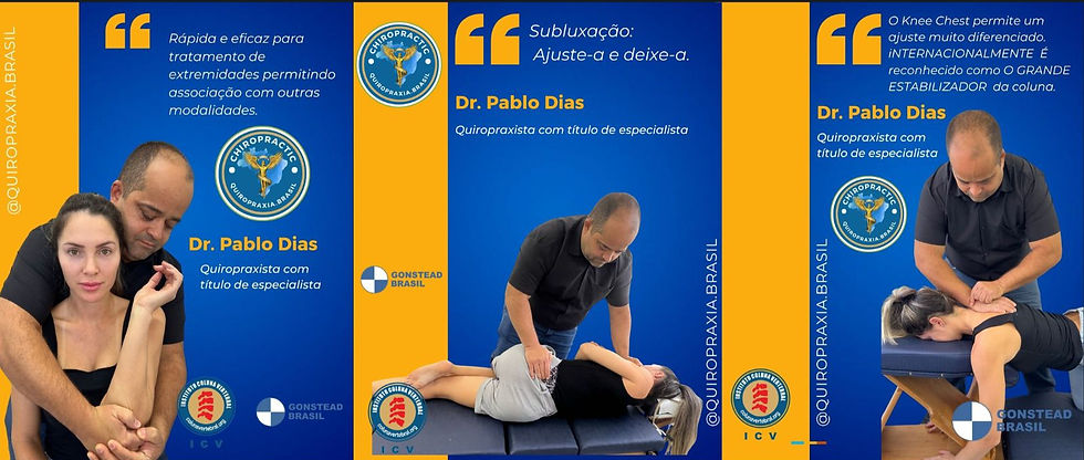 Knee Chest e, especialmente, Técnica do Joelho no Peito. Possui proficiência no método Thompson Minardi, além de diversas outras certificações. O Dr. Pablo Dias possui experiência em ensino em quase todos os estados do Brasil, mas também ministrou aulas no Chile e em países europeus, como Áustria, Chipre e Itália.